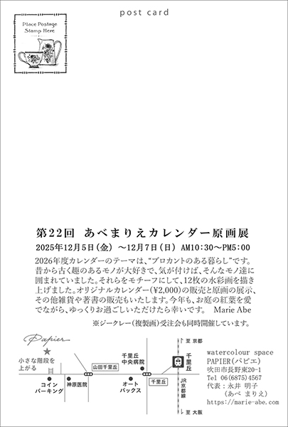 それらをモチーフにして、12枚の水彩画を描き上げましたので、是非是非、原画も観にいらしてくださいね。